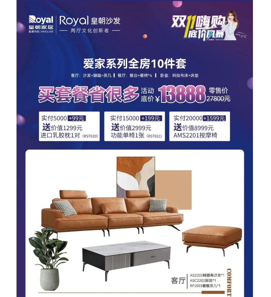 品质家具在哪买,实力口碑看过来,双11福利哪家强,皇朝沙发超惠玩