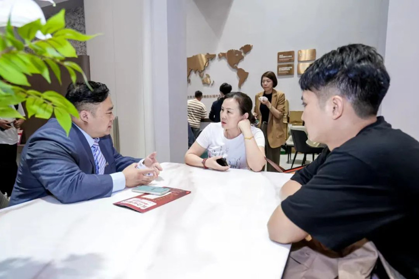 展会期间, 77度、居美、慧亚网等多家媒体相继莅临皇朝展位打卡。面对媒体的热切关注,皇朝大家居招商总监陈杰全面讲解了产品亮点、品牌战略、发展规划等方面问题,探讨交流家居行业新动态,并就广大经销商群体所关心的招商政策内容进行了详细说明。