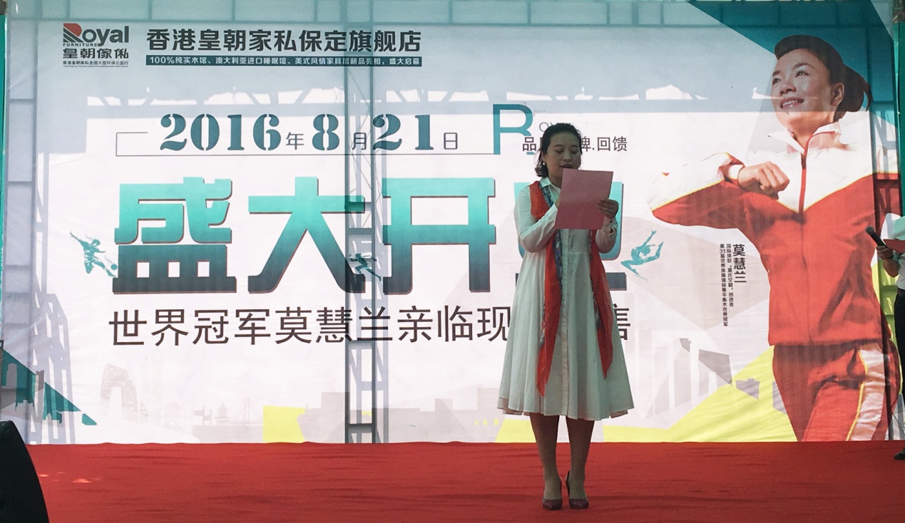 上午10时许 草莓影视高清,活动在河北省保定市三丰中路鑫丰家具城拉开帷幕,当天,奥运明星莫慧兰小姐,皇朝家私集团总裁助理兼市场总监褚汉青先生,鑫丰集团总经理陈冰先生,河北省质量检查站站长郭菲先生等嘉宾出席了活动, 。