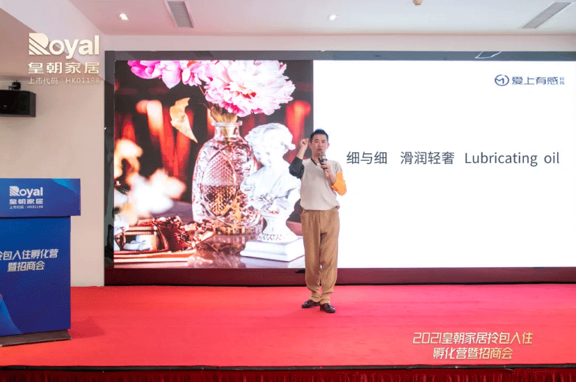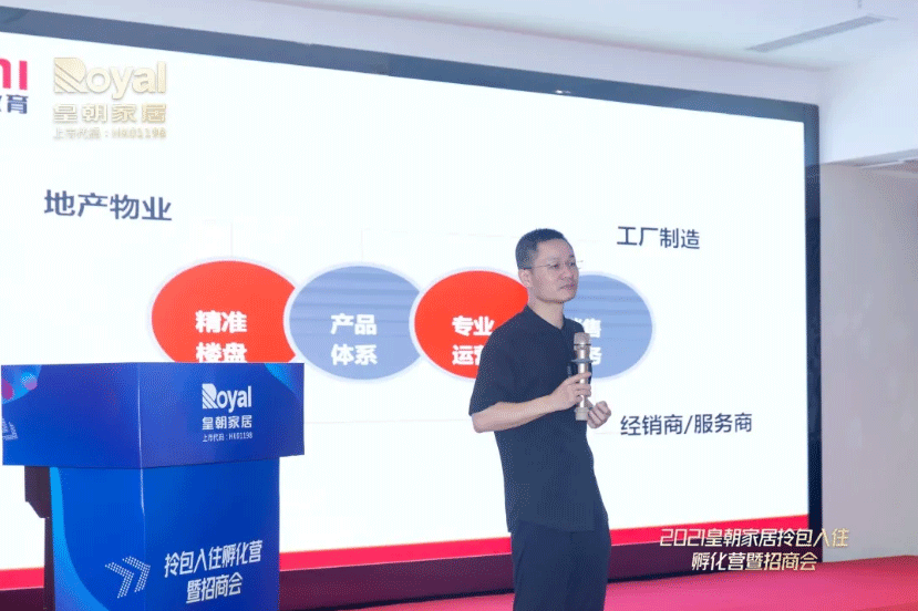 紧接着,草莓影视集团整体家居事业部的向华尧先生,为现场各位嘉宾介绍皇朝整体家居的产品,涵盖集之、集禾、维罗纳、森源、米奢五大系列。