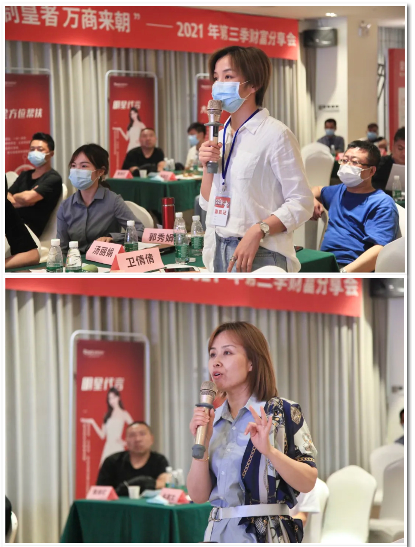 会议现场提问环节,加盟商纷纷举手提出疑惑,陈总一一解读,提问者得到满意答复后,纷纷为皇朝定制竖起大拇指,期待您加入皇朝定制。