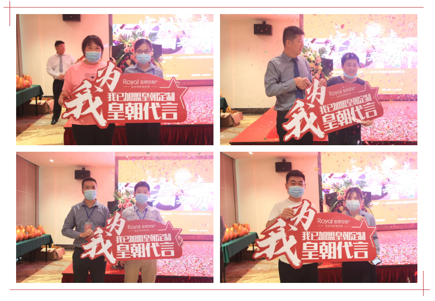 皇朝定制招商总监陈总带来的九大支持和两大惊喜限时政策,使与会建材精英对品牌,对加盟皇朝定制有了充足的信心,不少人在峰会启幕前就已经敲定了加盟意向,这次招商会之后相信会有更多的加盟商加盟到皇朝定制的大家庭中。