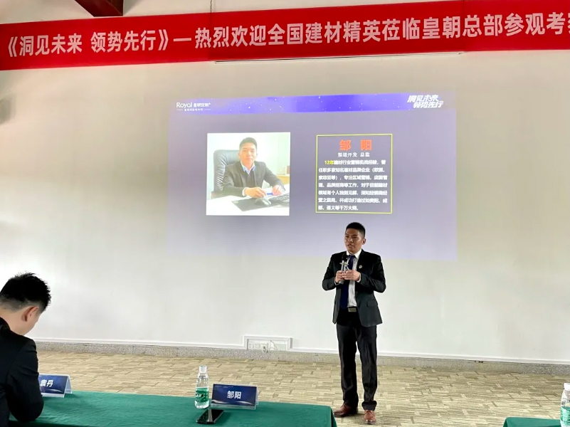 皇朝定制渠道开发部总监邹总为到场创业者公布最新加盟政策,引领建材行业创业者精英创业激情。