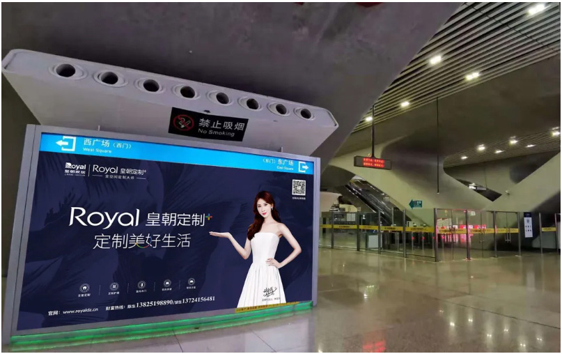 也是在今年,皇朝定制与各地终端门店一起加大了广告宣传的投入,更是正式启动高铁广告投放计划,携手国际巨星林志玲小姐,霸屏高铁枢纽站。