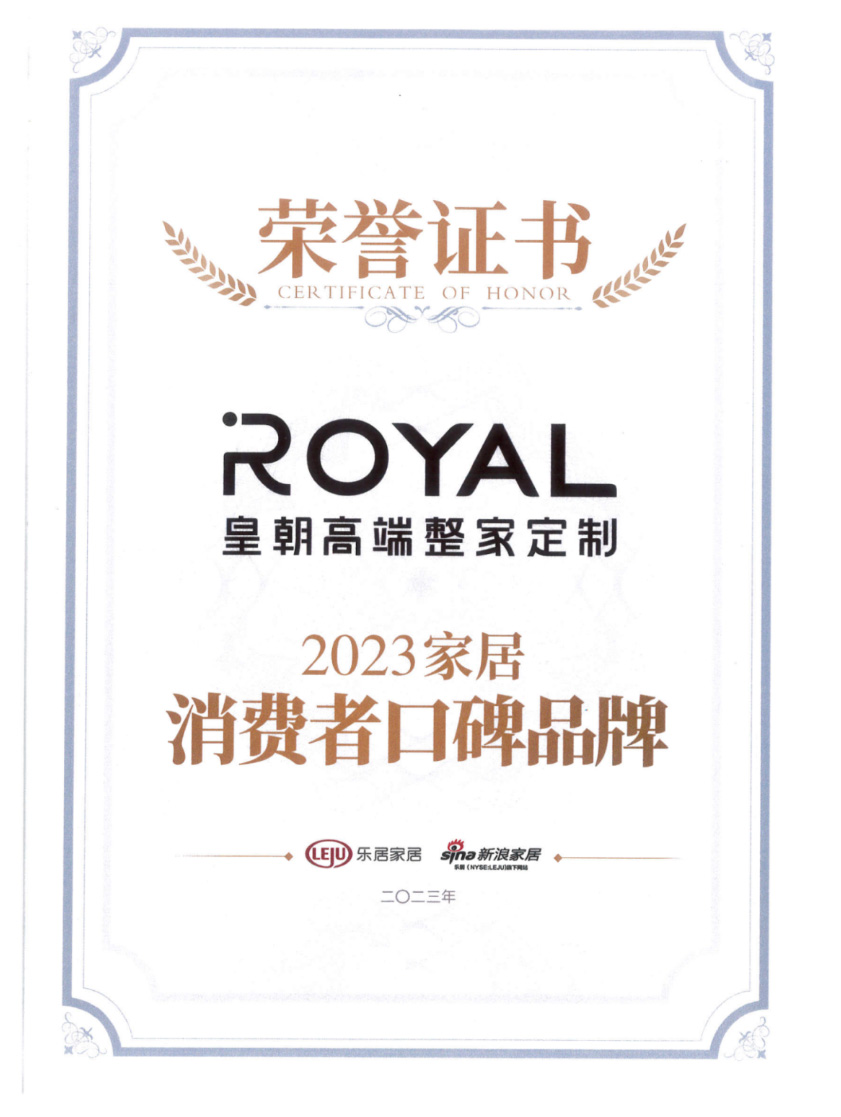 由乐居家居,新浪家居,大国中居,全国工商联家具装饰业商会联合主办的《2023中国家居消费者口碑调查》,在通过新浪家居覆盖消费者对品牌认知,销售过程评价 草莓影院,安装交付,产品质量,售后服务等6大方面的深度调查中,皇朝高端整家定制凭借卓越的品牌表现斩获消费者口碑品牌称号,以高质产品和优质服务通过消费者与专业评审研讨会的多重考验,获得广泛认可,从众多企业中脱颖而出,荣获“2023家居消费者口碑品牌”.