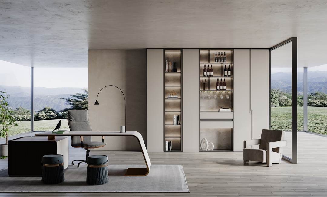 从家居产品到知识的精神家园,皇朝高端整家定制全新店态把设计区、产品展示区和体验区等主要店态板块融为一体,致力于为消费者提供真正的家居家装消费服务一体化。用“温度与尺度”贯穿整个门店。深度思考如何建立幸福感,传承匠心工艺与时尚简约。公共空间是品牌互动,产品空间是用户体验。品牌呈现轻奢高级的定位传承,产品空间是丰富多元的整家场景。