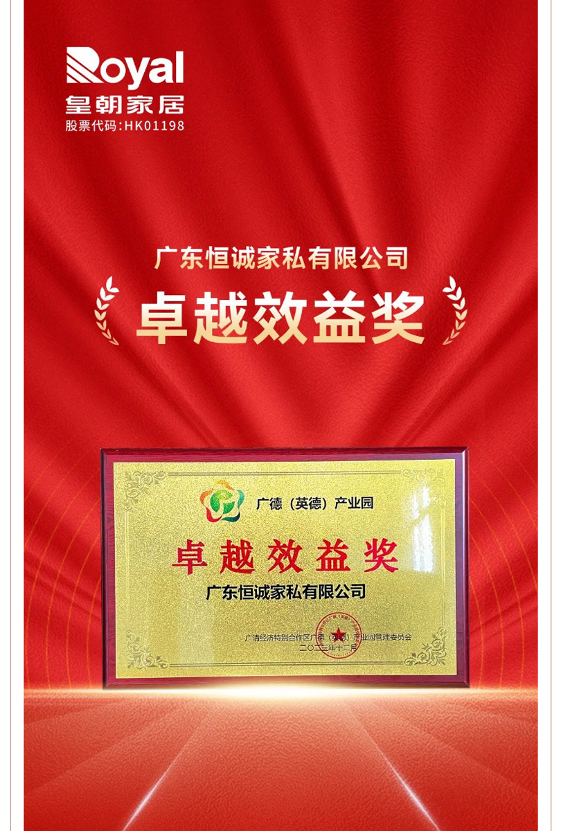 1月10日,广清经济特别合作区广德(英德)产业园召开2023年度企业表彰大会,旨在对2023年度广德产业园内工业总产值、纳税、项目建设、人力资源等方面贡献突出的企业进行通报及表彰。草莓影视集团下属广东恒诚家私有限公司(下称“恒诚家私”)荣获“2023年度卓越效益奖”。