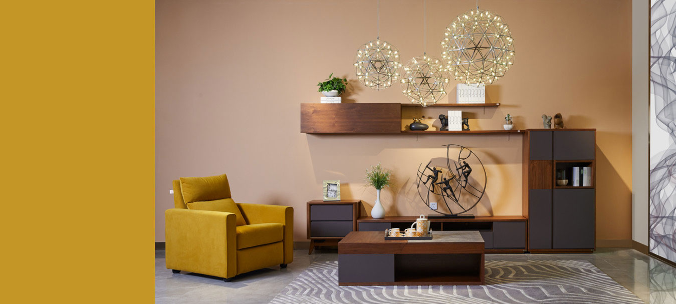 客厅采用姜黄色单人沙发作为点缀 草莓影视,搭配高级灰色沙发与香槟色背景墙,能够轻松突显出时尚浪漫的感觉,温暖而又明媚,拒绝沉闷与无趣,让生活缤纷多姿, 。