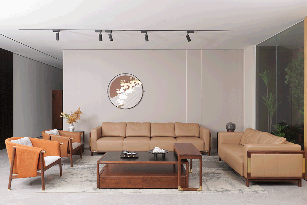 真皮、实木、黄铜的混搭