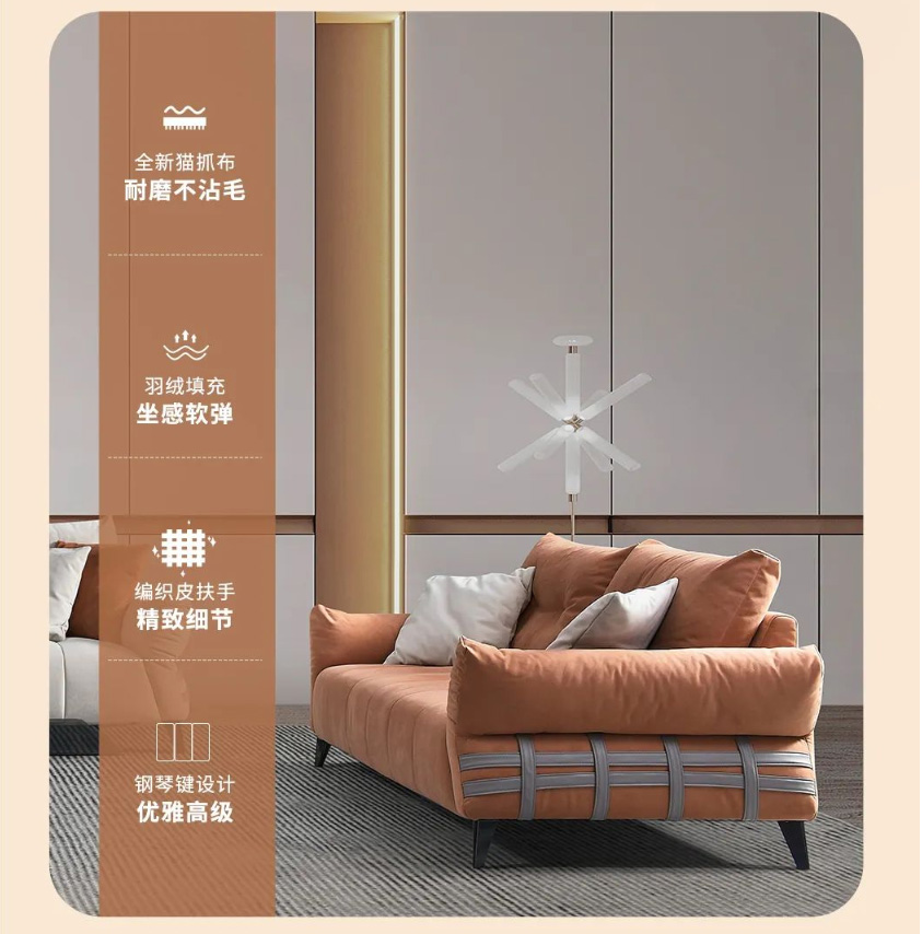 采用全新猫抓布面料,软糯的温柔质感,超耐磨无惧爱宠“魔爪” 草莓影视,防勾丝不沾毛,日常清洁打理方便,让您放心窝进沙发里与爱宠亲密相依, 。