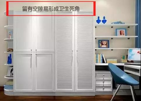 很多人买衣柜的时候没有考虑房间的高度,衣柜与天花板留下空隙,不能存放东西还留下了卫生死角。建议做成通顶衣柜,和墙面实现无缝对接,存储空间增加也避免卫生死角。
