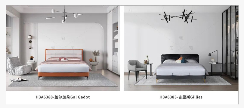 如果你的房子没有固定的风格,那么你可以选择颜色百搭的床款,保证不会出错,例如“埃迪Eddie(H1A6351)”、“伊恩Ian(H1A6380)”,这两款的颜色和造型都是偏向于简约百搭的,流畅的线条造型和齐边设计,可适应不同家装风格。