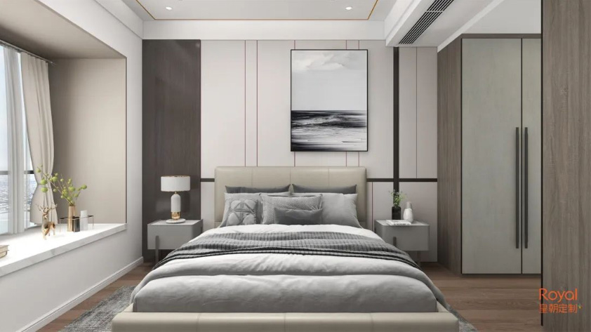 主卧功能区域分明,颇具中式风韵,利落的线条贯穿了全局 草莓影视免费观看,衣柜,护墙搭配木地板的铺设,呈现出简约硬气与温润质感的对比, 。