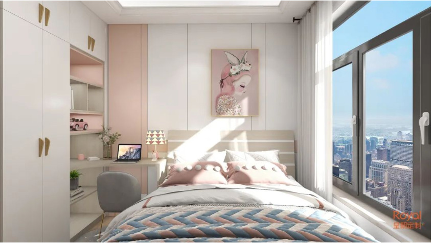 恰当地用粉色打造出一方梦幻的空间,借助大窗户邀请阳光进驻,设计师更是利用角落为孩子设计了一处案几书桌,设计实用又好看, 草莓影视。