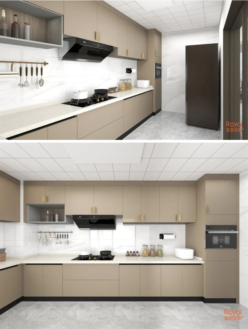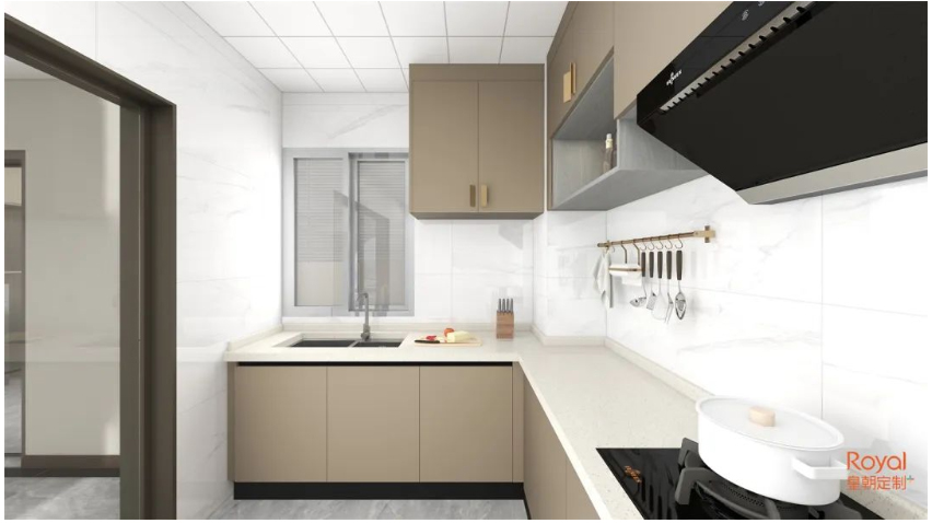 幸福与味道紧密相连。收纳柜做满,整齐的厨房让自己下厨也能品尝预约的滋味。