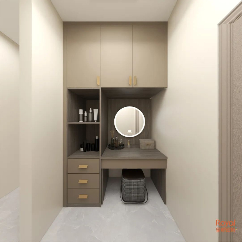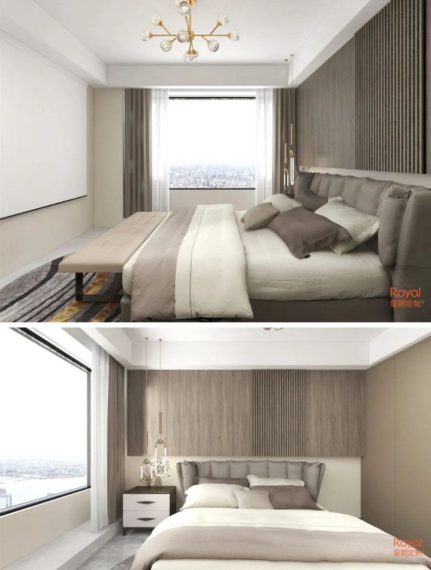 衣柜收纳区域和梳妆区域自成一体,将自己收拾利落,转身就能进入卧室倒头就睡。想来,这就是所有人梦想中的生活吧!