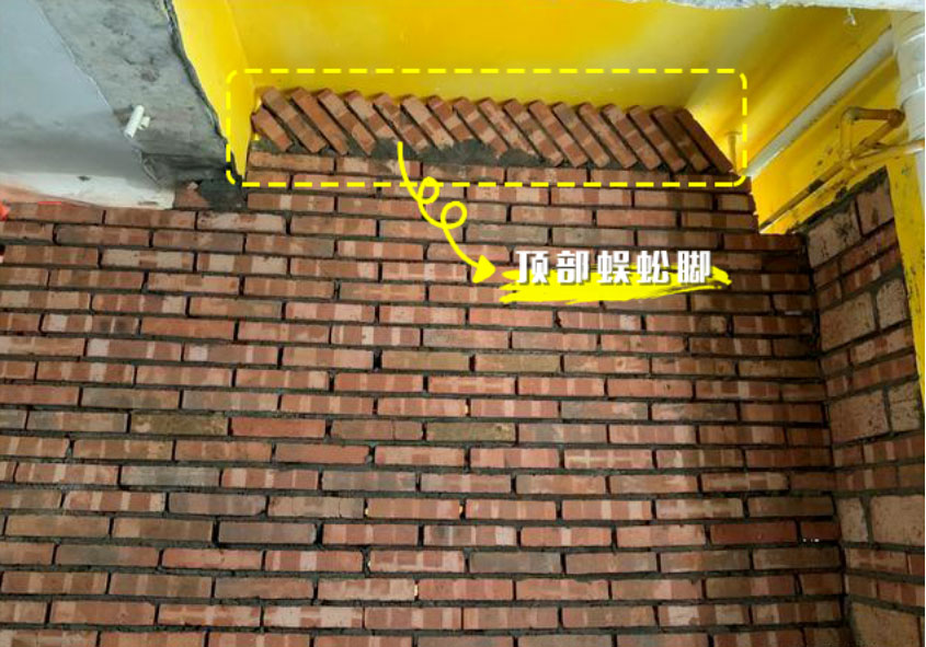 在进行蜈蚣脚砌墙工艺之前,需要在新砌墙的顶部预留约15公分的空间,如果在砌墙过程中,顶砖的高度过高,可以选择割矮顶砖,或者使用小砖平铺 草莓影视免费观看,以便在顶部留出足够的空间,然后再按照45度斜角的方式进行收口, 。