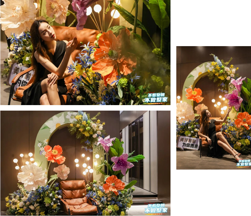 馆内则是设了鲜花簇拥氛围十足的打卡点,满屏的春日气息,破框而出引人流连,举手投足间就能拍出网红氛围感大片,彰显皇朝定制的年轻活力。