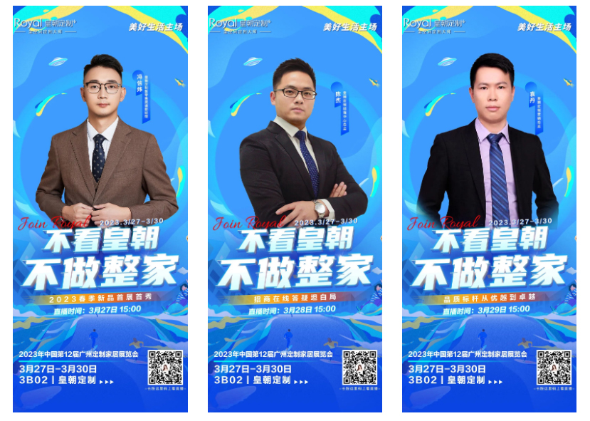 加上本次展会期间,皇朝定制还在27日-29日的每天下午三点,邀请大咖在为期3天的逛展直播中对产品、政策及品牌这三个维度进行360°讲解,搭建起品牌与目标精英创业者的面对面互动平台。