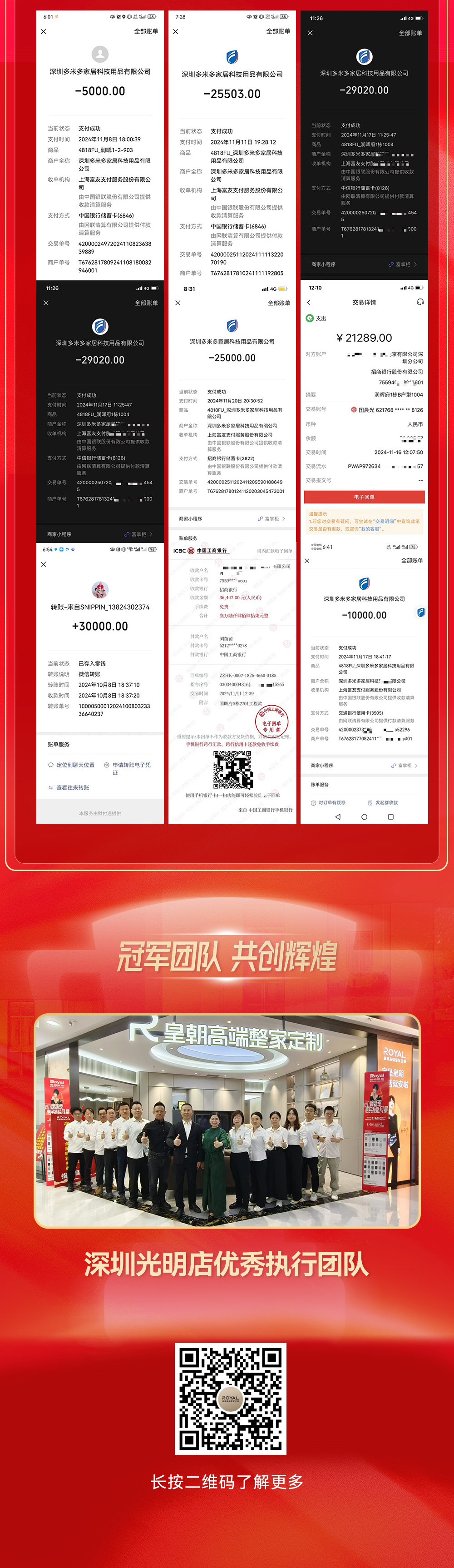 销售额498万,皇朝高端整家定制深圳光明店双11大促再创辉煌战绩