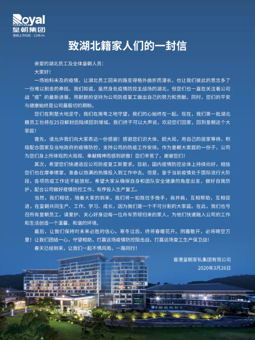 千里寄书,纸短情长 | 皇朝集团致湖北籍同仁及经销商家人的一…