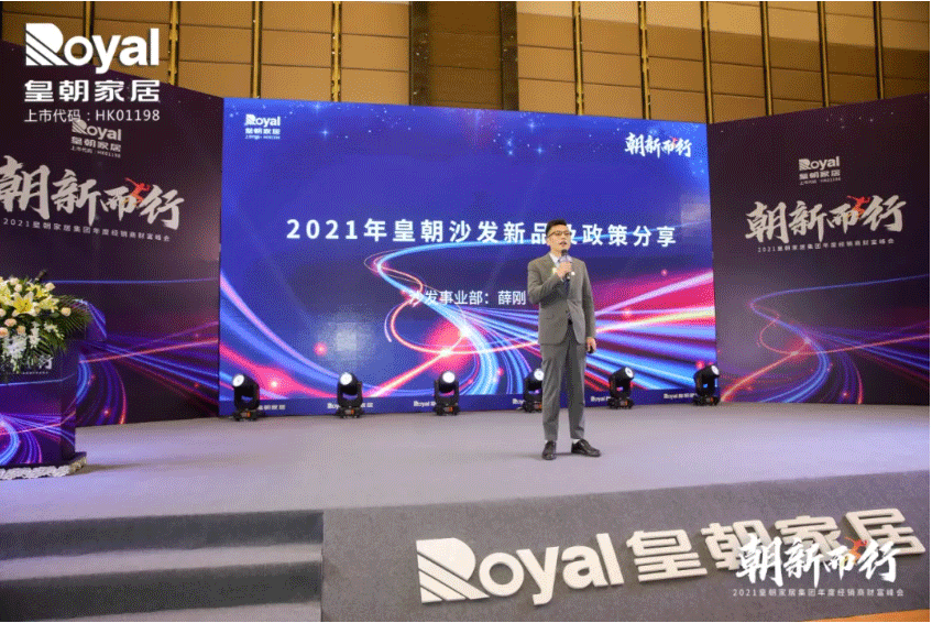 皇朝沙发营销总监薛刚先生发布了2021皇朝软体沙发新品,新款沙发将会广泛运用新材料、优化产品设计、适应新消费群体的消费需求与习惯,并针对不同地域的需求推出开店支持政策。
