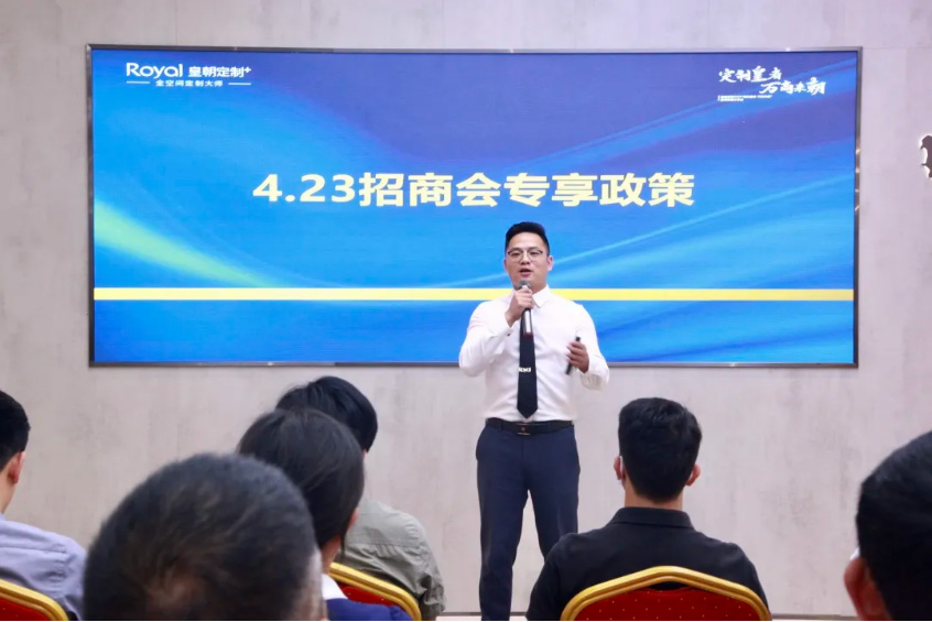 皇朝定制事业部渠道开发部邹总带来《项目优势讲解》主题分享, 从皇朝历史,皇朝优势,发展模式,拎包项目,帮扶模式,线上营销等板块介绍皇朝的运营体系,皇朝无论是从帮扶模式还是线上全营销推广,都得到台下经销商朋友认可,皇朝将迎来二次腾飞, 草莓影视在线。