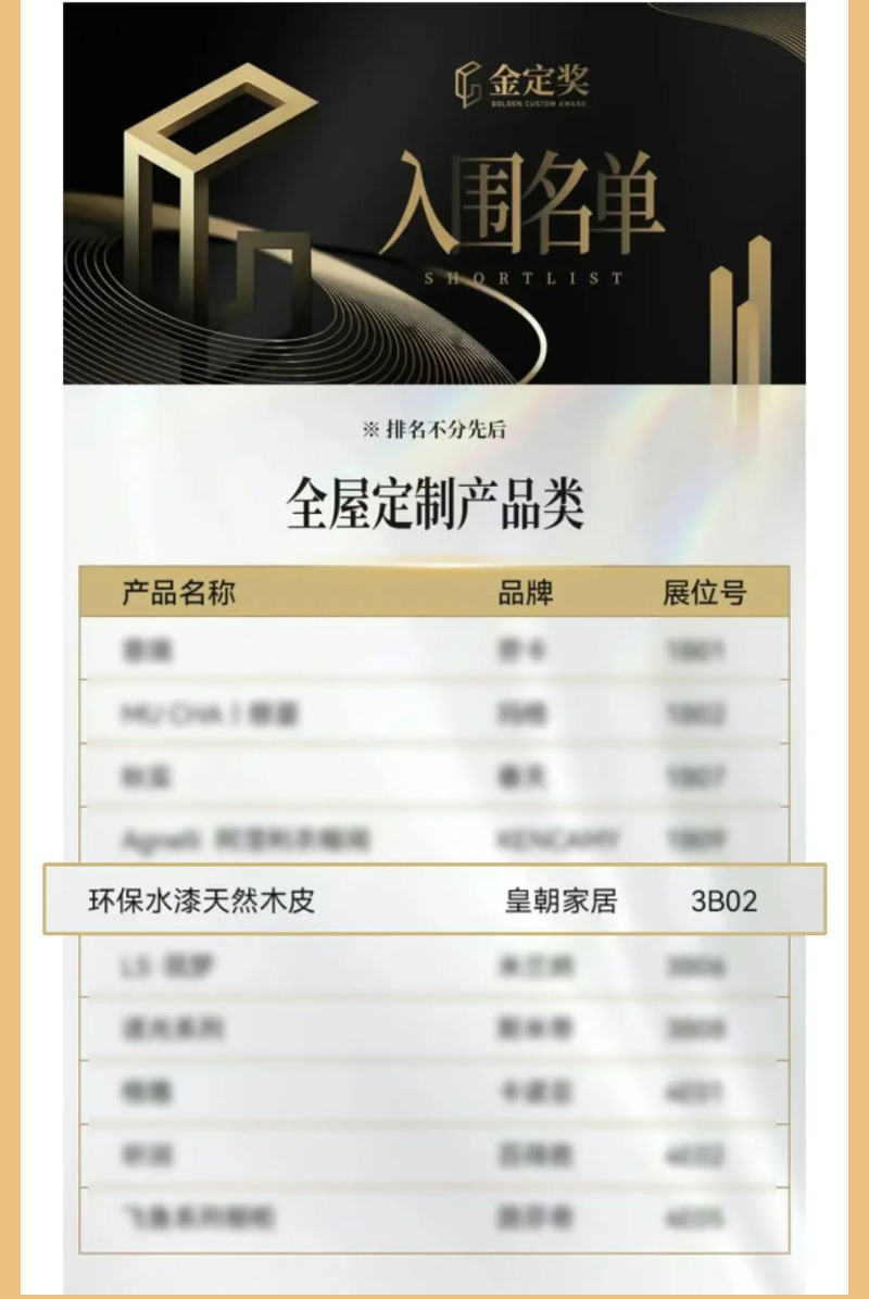 环保水漆天然木皮新品兼具外在颜值质感与内在工艺细节,更凭借环保,健康,高品质的特性,成为展会热议焦点 草莓影视高清,在众多参展作品中脱颖而出,成功入围本届金定奖, 。