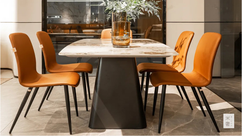 皮革质感的餐椅设计,简约大方,与餐厅中的奢石岩板交相辉映,带来一种时尚精致的用餐氛围,而坚实耐用的五金支脚,硬度大,稳固耐用不摇晃,给家人稳稳的安心 草莓影视免费观看, 。