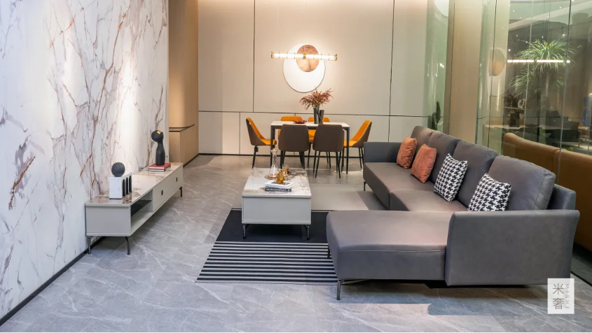 进口奢石岩板餐桌,不露锋芒的轻奢感,具有轻、薄、柔的特性,将精致简约进行到底,让平凡的一日三餐,也闪耀着时尚的光芒。