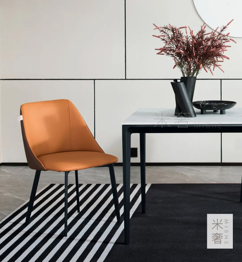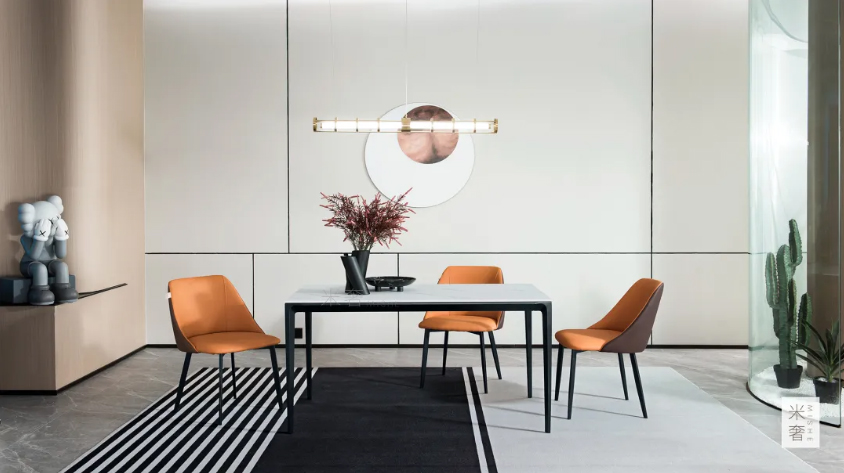 岩板+皮革,完美CP打造奢华魅力,丰富了整个用餐空间的层次,浑然天成的意式简奢气质由内散发,彰显生活艺术。