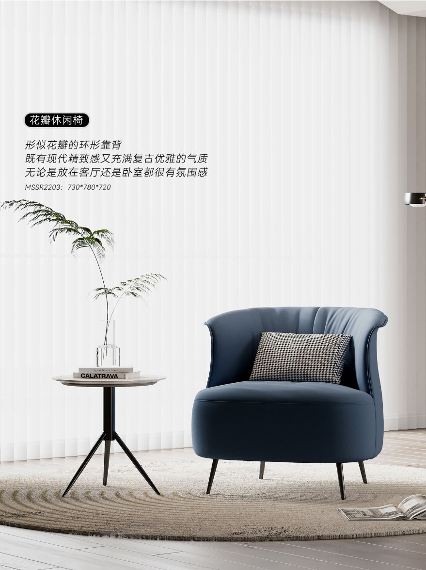 ⑤ 花瓣休闲椅:形似花瓣的环形靠背,既有现代精致感又充满复古优雅的气质,无论是放在客厅还是卧室都很有氛围感。