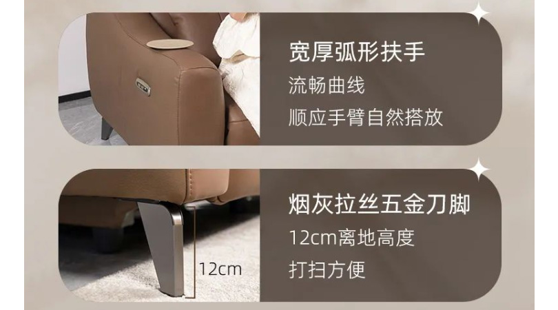 材质:头层黄牛皮. 东亚高弹海绵. 羽绒烟灰拉丝五金刀脚 草莓影视高清. 全实木框架 .